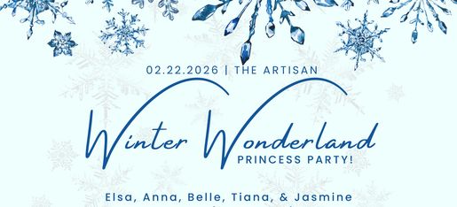 Step into a magical afternoon at The Artisan! 👑✨ Enjoy music, dancing, interactive story time, themed crafts, delicious food, and enchanting photo opportunities with Anna, Elsa, Jasmine, Tiana & Belle.