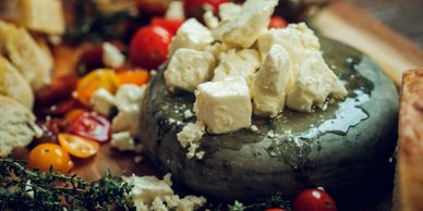 Our traditional Marinated Aged Feta made from goats milk and aged for 3 months. We steep herbs, peppercorns, basil & garlic in a blend of extra virgin olive oil and canola oil.