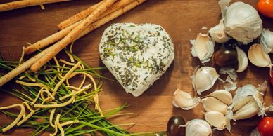 5 ounce heart shaped fresh goat cheese seasoned with organic garlic and chives. Winner of many awards, a sure winner for all tastes, men love this one. A staple with pastas, potatoes, meats and breads. Try melting with a little butter and milk to serve over cooked pasta for a quick lower fat Alfredo sauce.