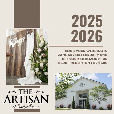 The Artisan is the event venue you've been looking for; from lavish parties to small intimate gatherings. Let your dreams become a reality while you and your guest enjoy the one of a kind experience and atmosphere The Artisan at Baetje Farms provides with our countryside setting.