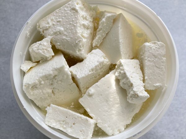 Traditional Greek style feta made with goat milk. Award winning, aged for a minimum of four months. The paste is solid, dense and crumbles easily, excellent for all your culinary needs. Tangy, flavorful, excellent in salads, pastas and everywhere you want to add a bit of something special.