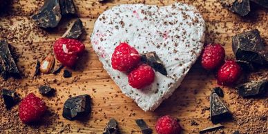 Our traditionally made chèvre blended with delicious dark chocolate and raspberries to form this very special treat. This chèvre is great with a nice glass of red wine for an after dinner dessert. FALL/WINTER AVAILABILITY ONLY