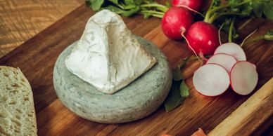 Miette is our bloomy rind sheep and goat milk cheese here at Baetje Farms. This cheese has the flavor of sweet, very yeasty bread dough waiting to be baked. It has the aroma of fermented grapes and the creamy consistency much like that of a baked cheesecake as it melts in your mouth. Images of pure rich cream drawn from the top of fresh milk fill your mind as you enjoy, this cheese is truly a delight and is a special treat to enjoy anytime!